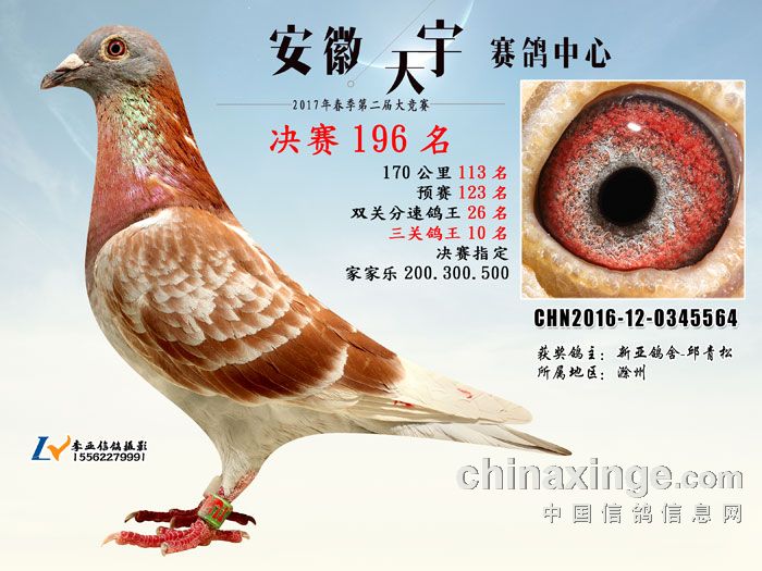 2017春安徽天宇赛鸽中心获奖鸽欣赏(196-200名)