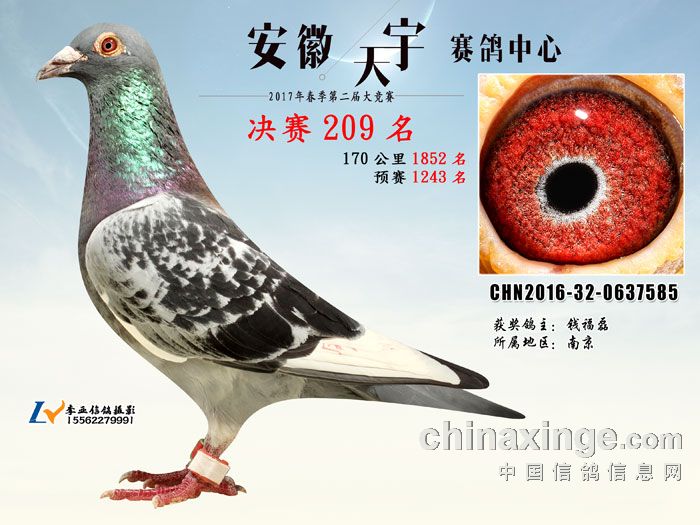2017春安徽天宇赛鸽中心获奖鸽欣赏(206-210名)