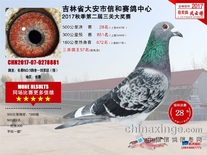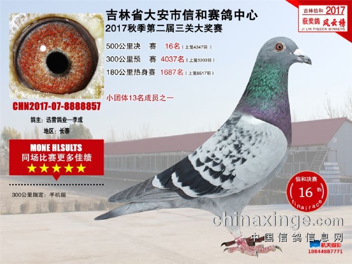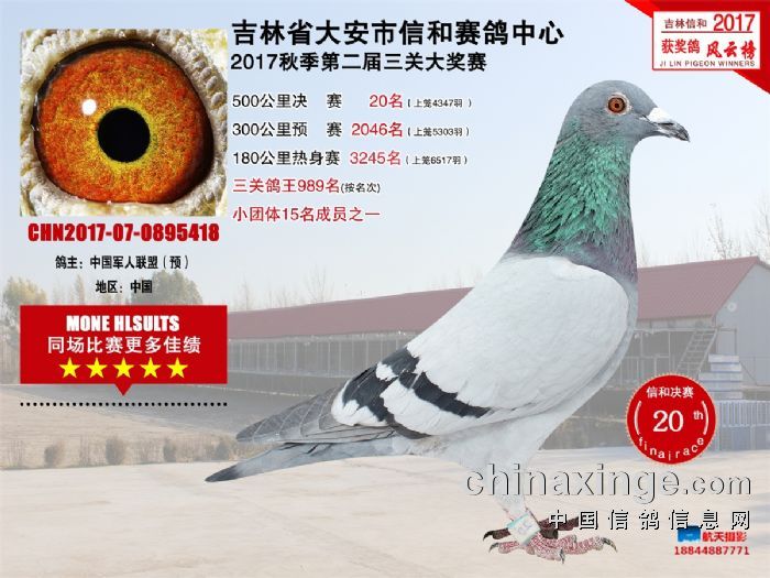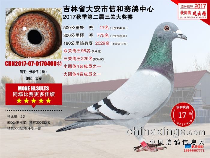 大安信和双关加战赛缴费鸽前195名获奖鸽