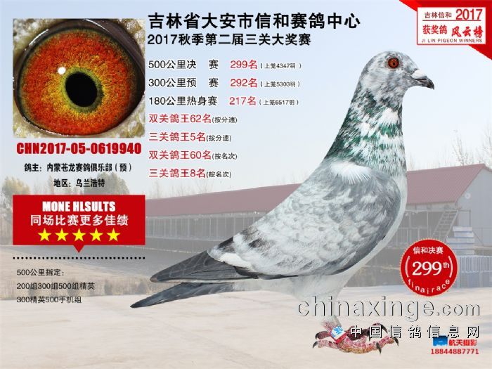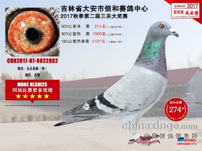 大安信和双关加战赛缴费鸽前195名获奖鸽