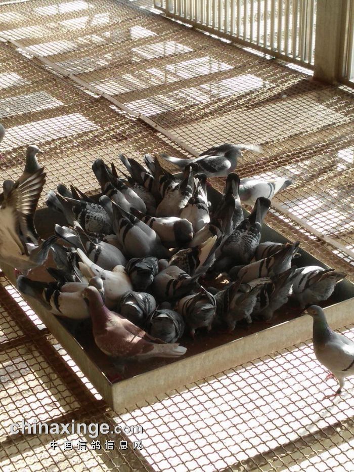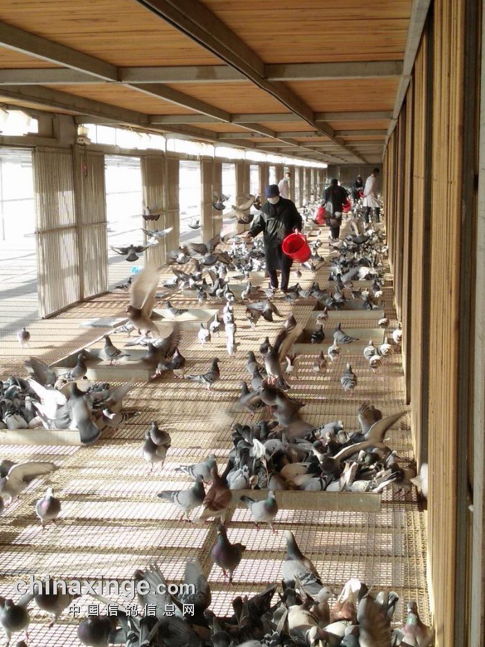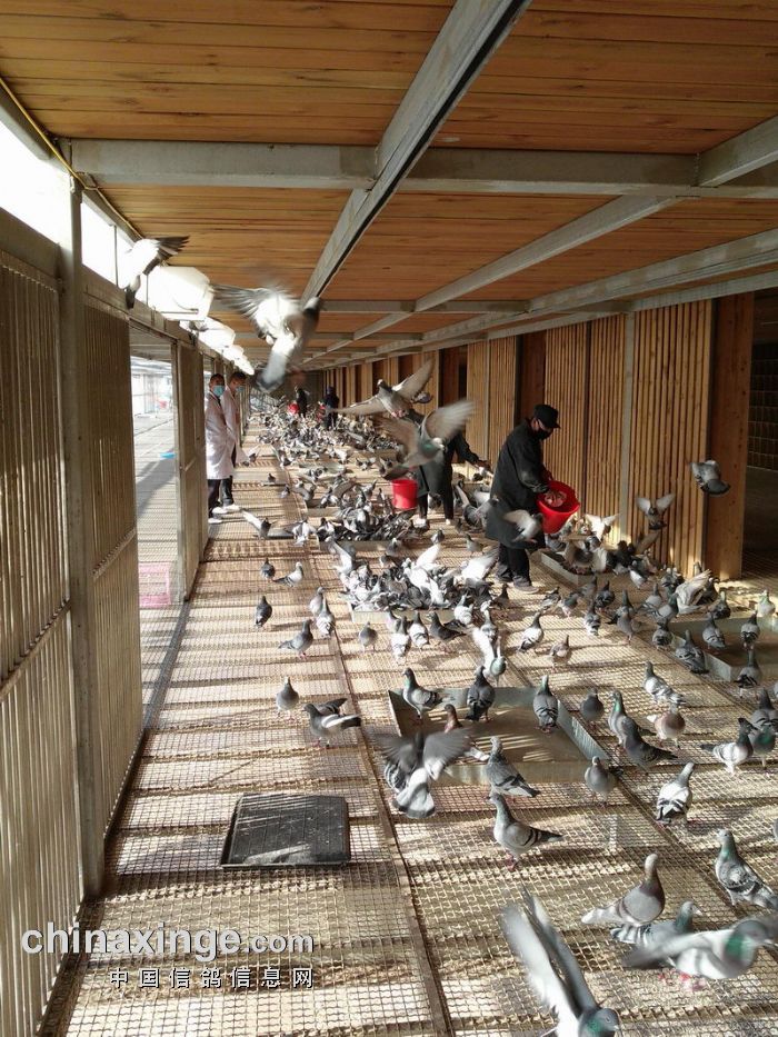 监赛鸽友上棚监看赛鸽进食情况