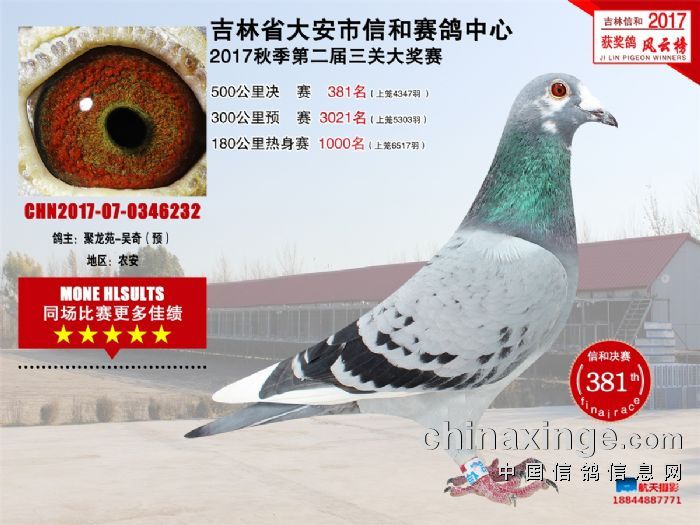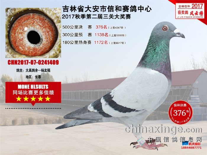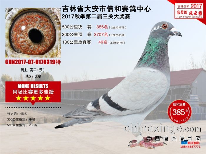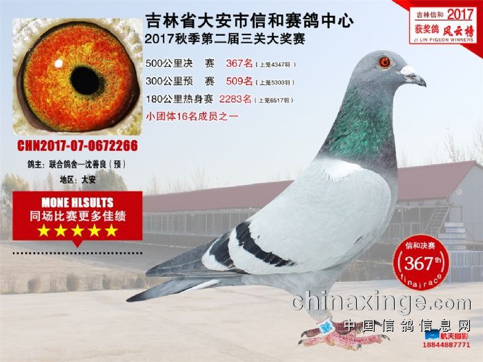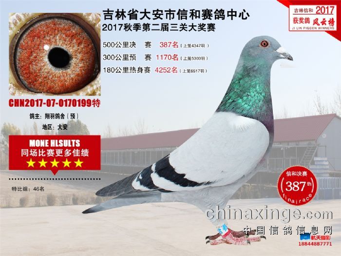 大安信和双关加战赛缴费鸽前195名获奖鸽