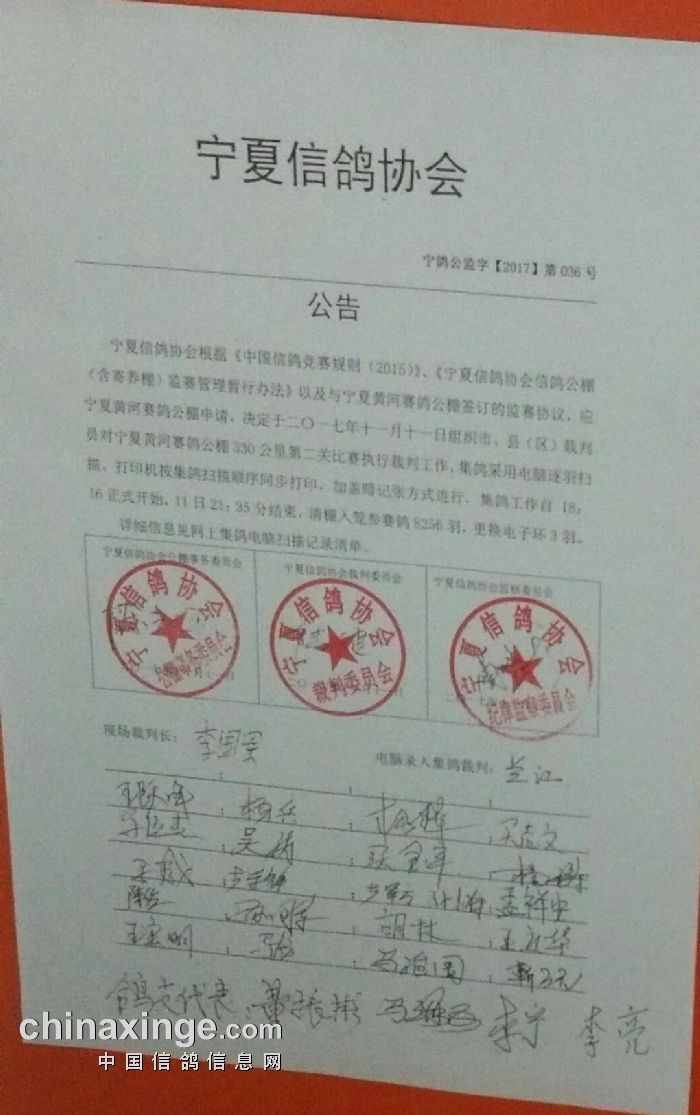 宁夏信鸽协会公告