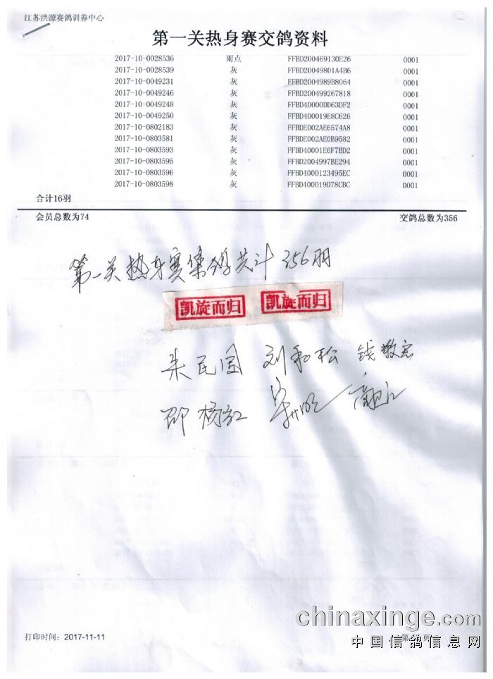 热身赛交鸽数据鸽友代表签字