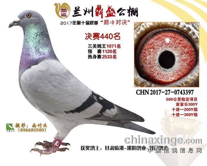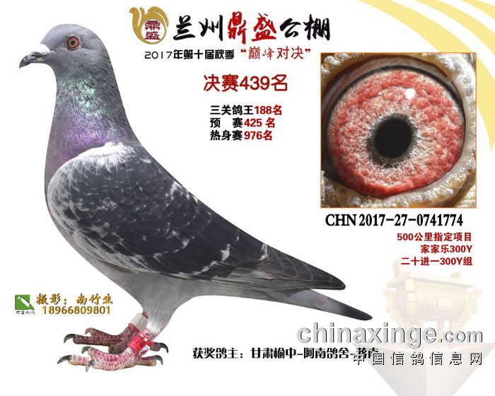 2017年秋兰州鼎盛赛鸽公棚获奖鸽(436-440名)