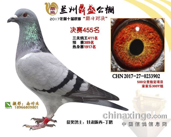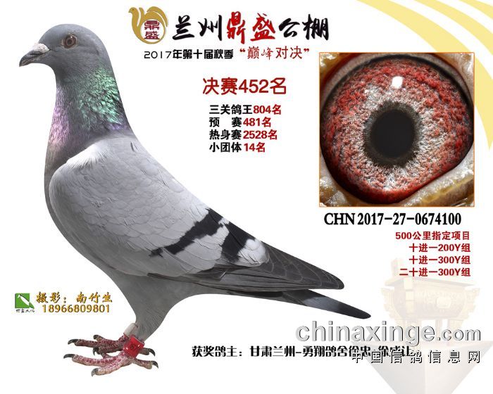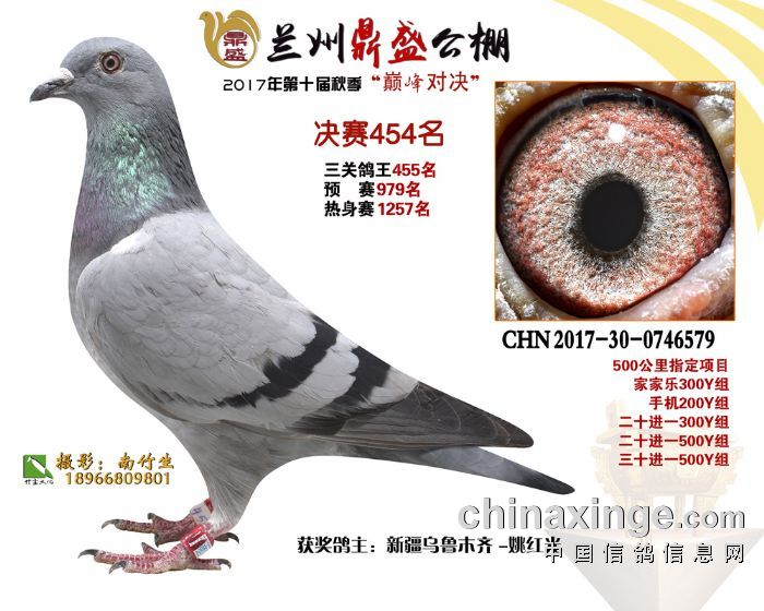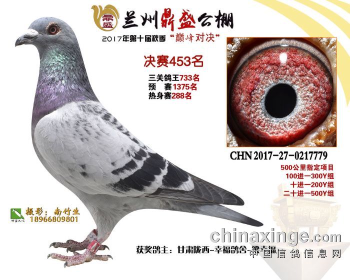 2017年秋兰州鼎盛赛鸽公棚获奖鸽(451-455名)
