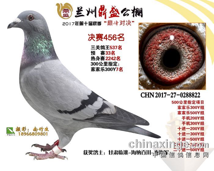 2017年秋兰州鼎盛赛鸽公棚获奖鸽(456-460名)