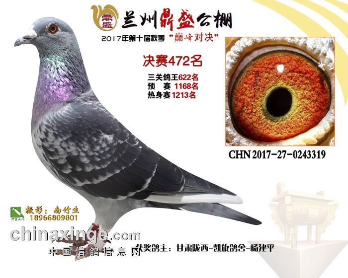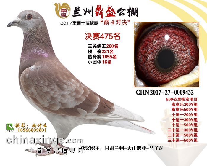 2017年秋兰州鼎盛赛鸽公棚获奖鸽(471-475名)