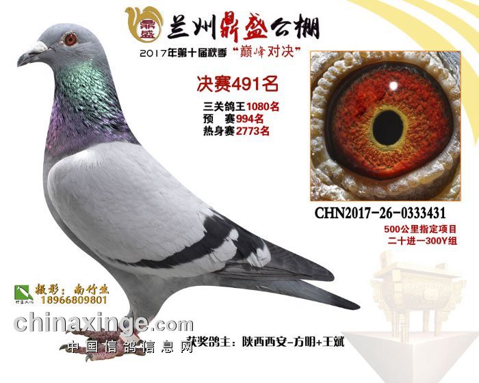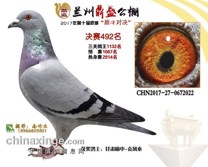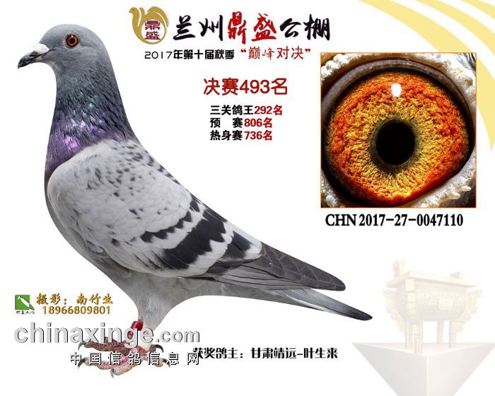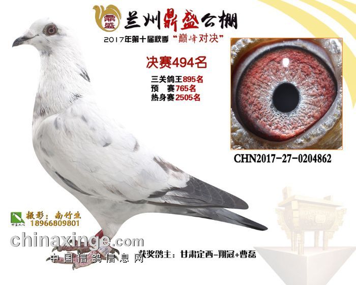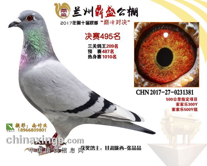 2017年秋兰州鼎盛赛鸽公棚获奖鸽(491-495名)