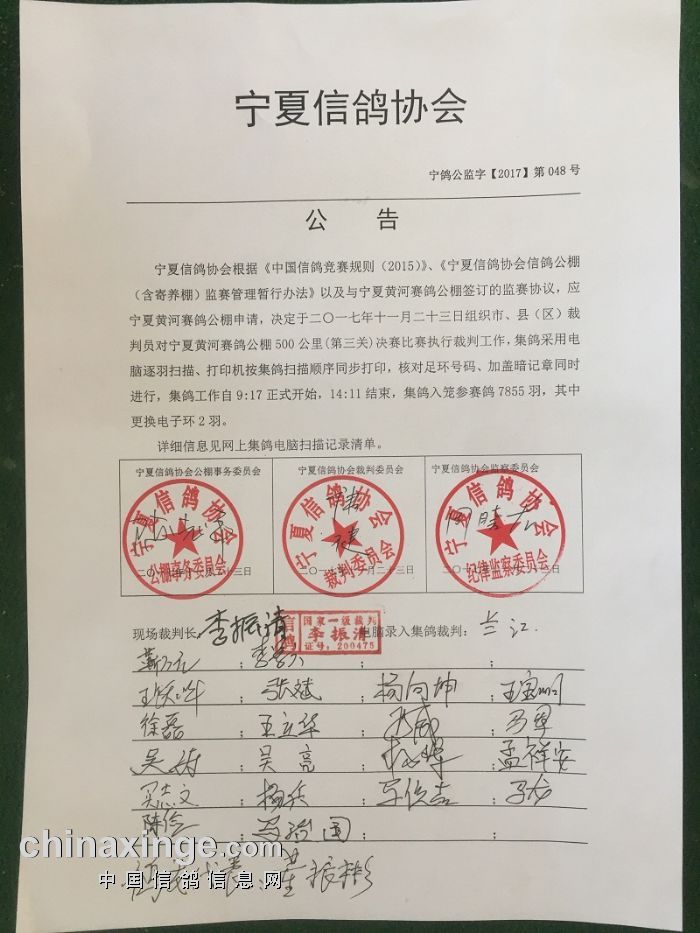 宁夏信鸽协会公告