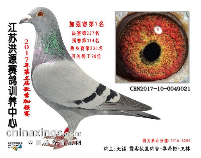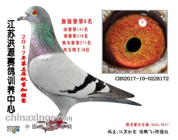 2017年秋赛加强赛获奖鸽照片1-10名