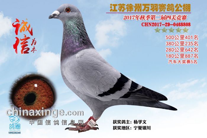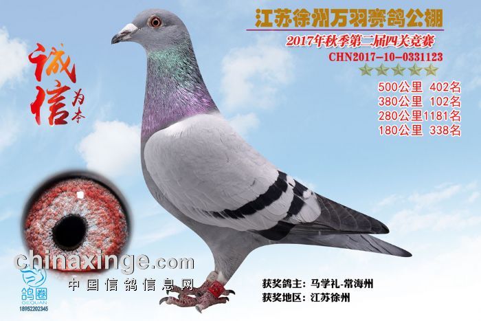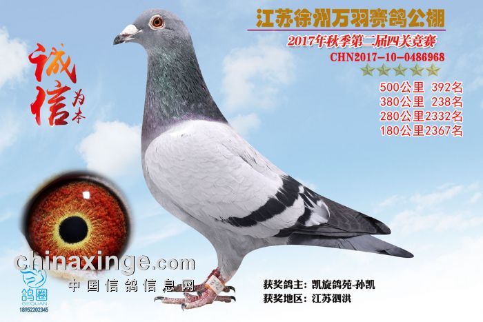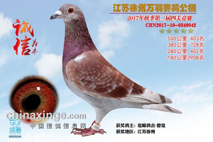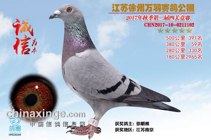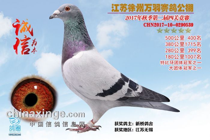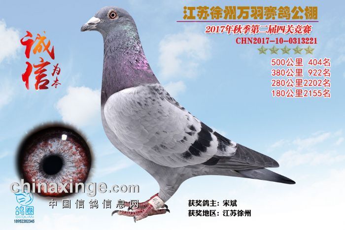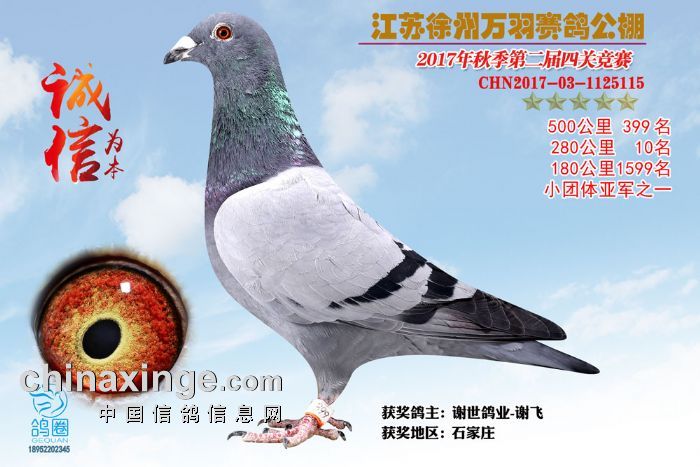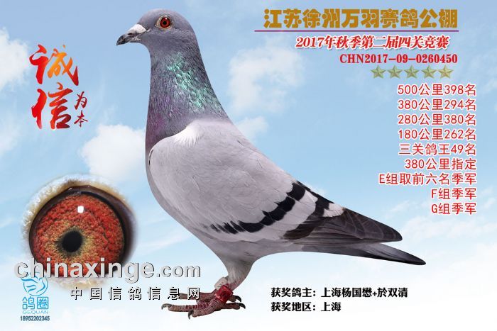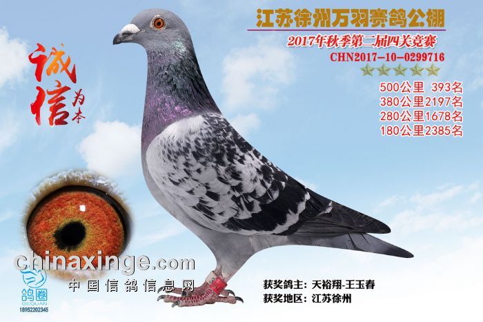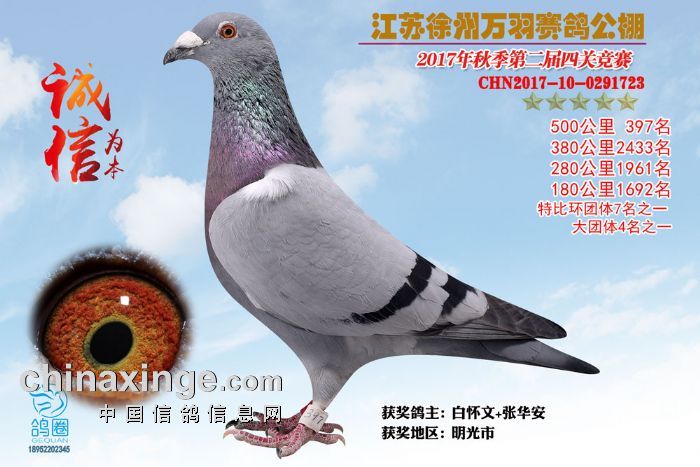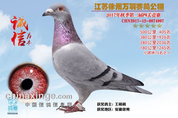 2017年秋江苏徐州万羽赛鸽公棚获奖鸽欣赏(391-405)名