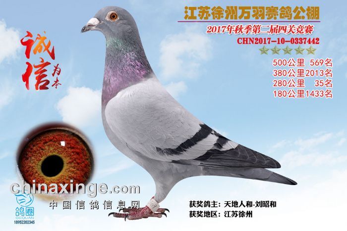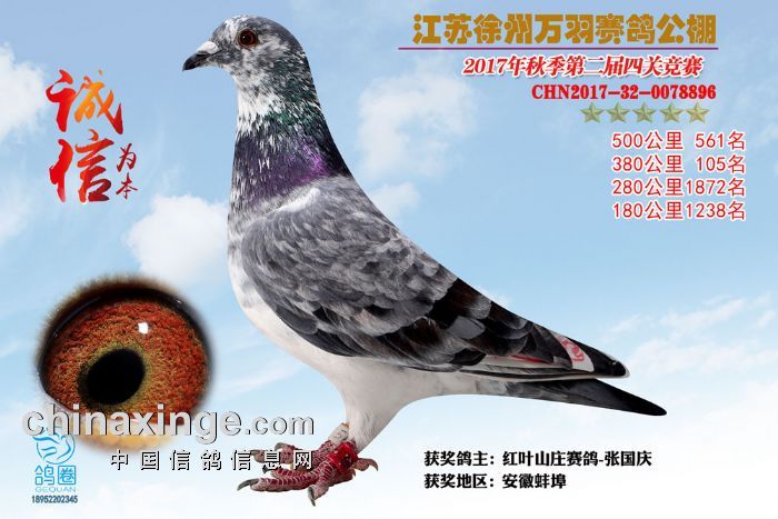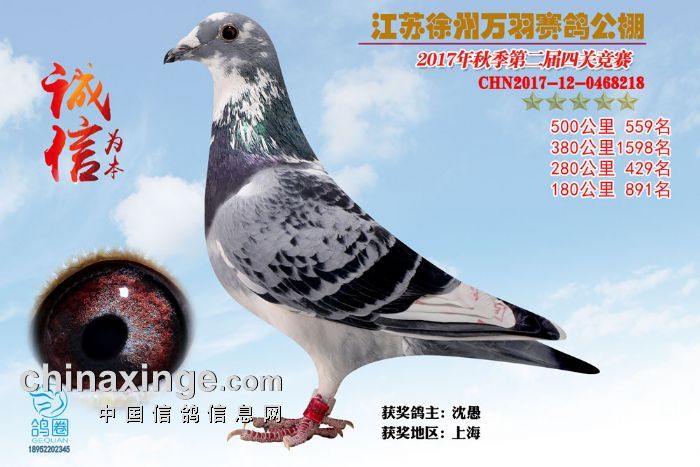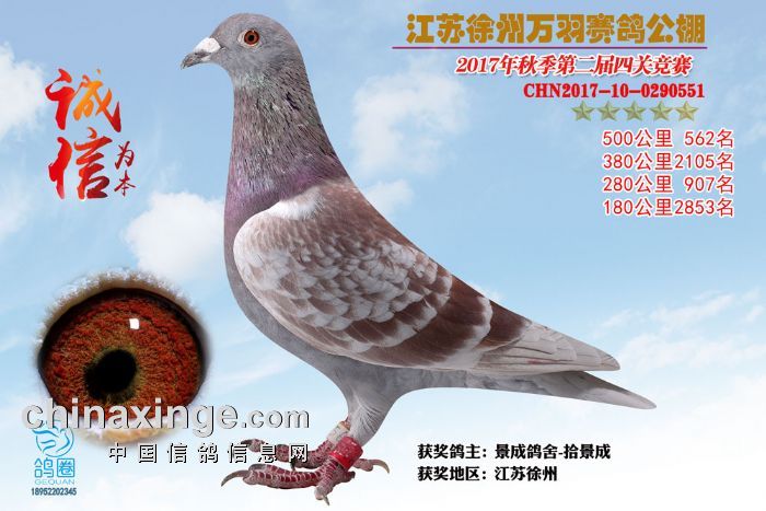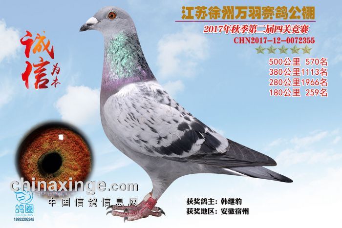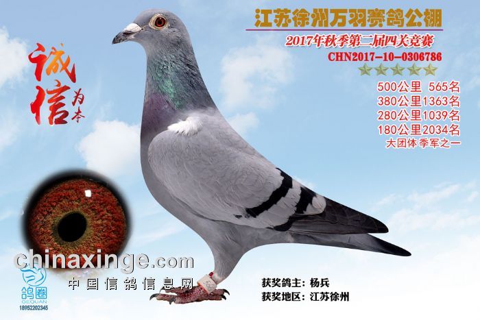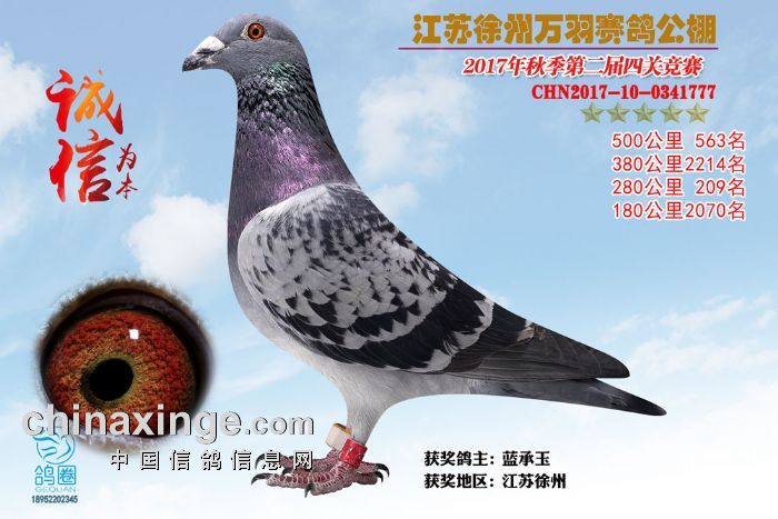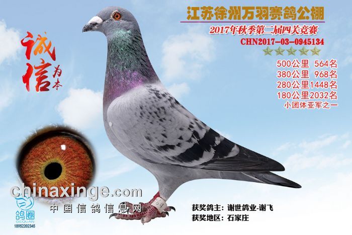 2017年秋江苏徐州万羽赛鸽公棚获奖鸽欣赏(556-570)名