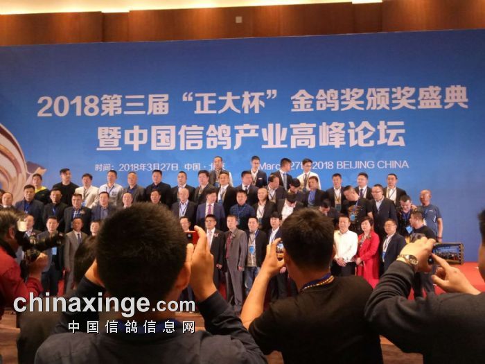 3月27日,2018第三届“正大杯”金鸽奖暨中国信鸽产业高峰论坛在国家会议中心盛大举行。知名专家学者、业界精英及金鸽奖年度优秀获奖鸽友500余人出席、参与了本次盛会。上午,学界专家、优秀企业代表,就信鸽产业等相关问题进行了主题演讲和思想交流。下午,60余位鸽界知名企业负责人就中国信鸽事业当前及未来发展的诸多问题进行了探讨。晚上,全体与会人员出席一年一度的金鸽奖颁奖盛典。