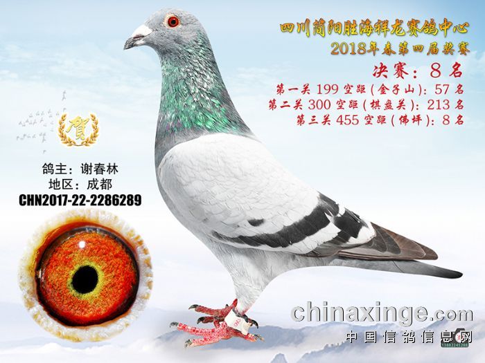 四川简阳胜海祥龙赛鸽中心2018年春获奖鸽照片1-15名