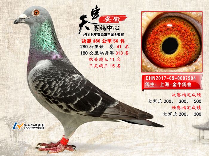 2018春安徽天宇赛鸽中心获奖鸽欣赏(56-60名)