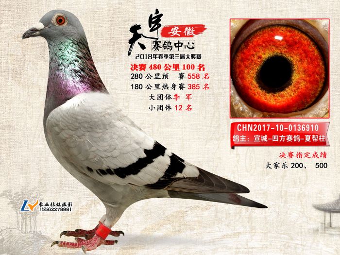 2018春安徽天宇赛鸽中心获奖鸽欣赏(96-100名)