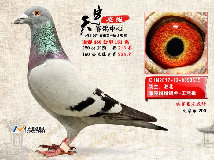 2018春安徽天宇赛鸽中心获奖鸽欣赏(151-155名)
