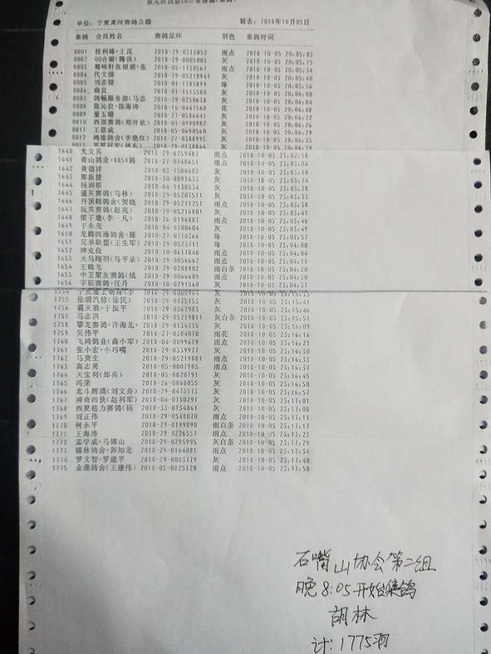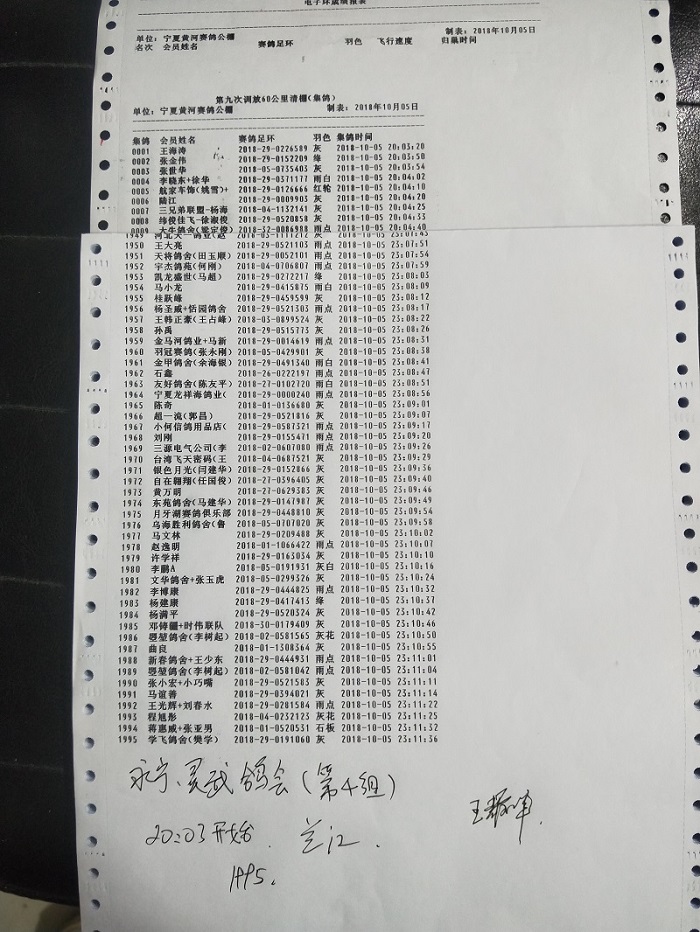 宁夏黄河赛鸽公棚双关鸽王加关赛61-75名赏析