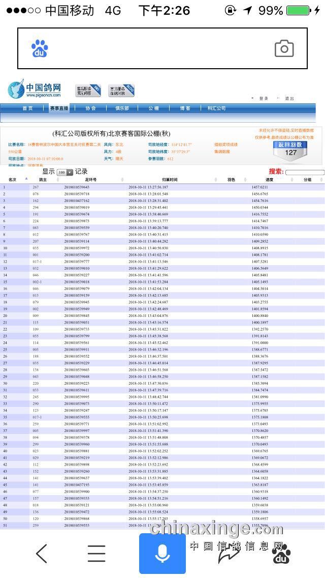 咋天(11曰)北京赛客林波尔中国大本营612羽林波尔49个大品系的参赛鸽同北京开创者铁鹰特比环、北京海淀特比环2万多羽进行了对抗赛,铁鹰、海淀是500公里,北京赛客林波尔中国大本营为了同铁鹰、海淀特比环同天、同地、同时开笼飞了551公里。