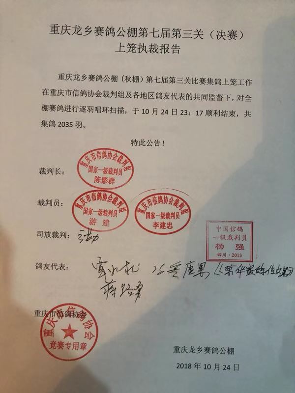 重庆龙乡信鸽公棚(秋棚)第十二届决赛指定中奖名单