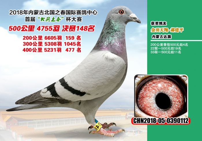 2019年内蒙古北国之春赛鸽中心获奖鸽欣赏(301-308名)