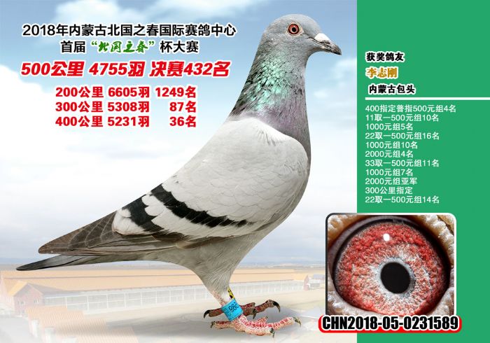 2018年内蒙古北国之春赛鸽中心获奖鸽欣赏(426-435名