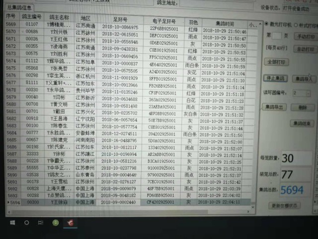 江苏爱翔(秋棚):第三关500-530公里电子环更换及更改羽色信息