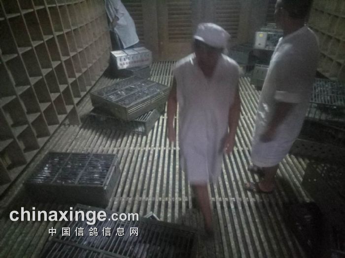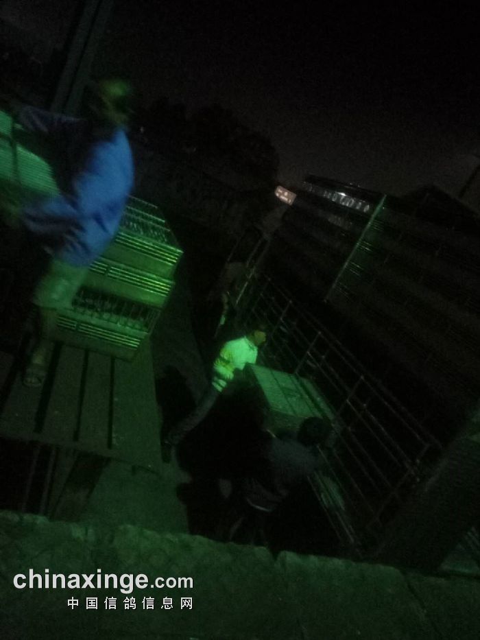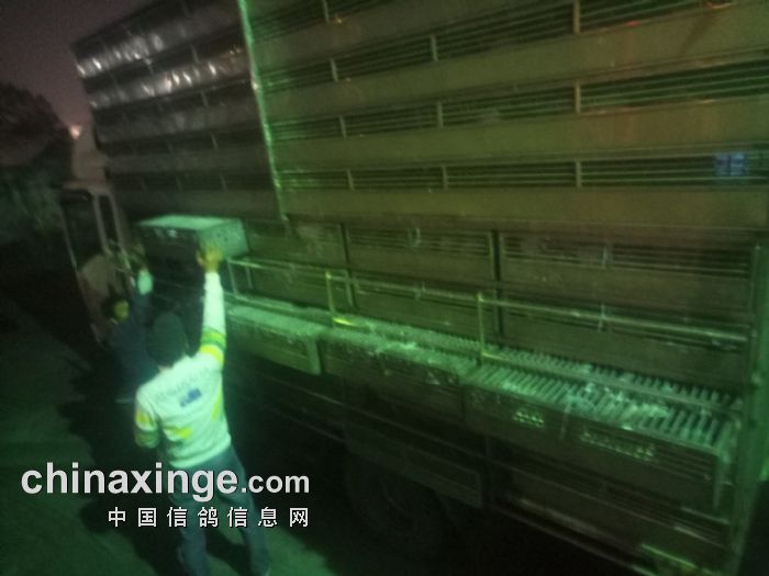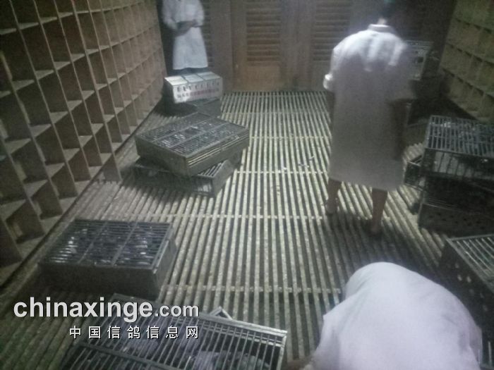 汕头信源公棚11月15日晚第六次训放(约40公里)集鸽前准备工作
