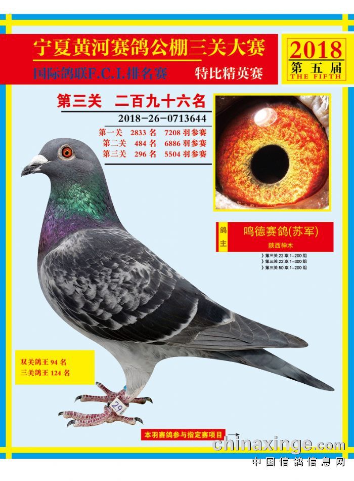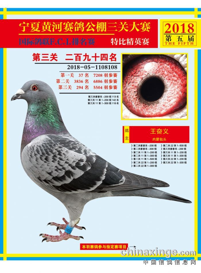 宁夏黄河赛鸽公棚2018年度500公里决赛291-300名赏析