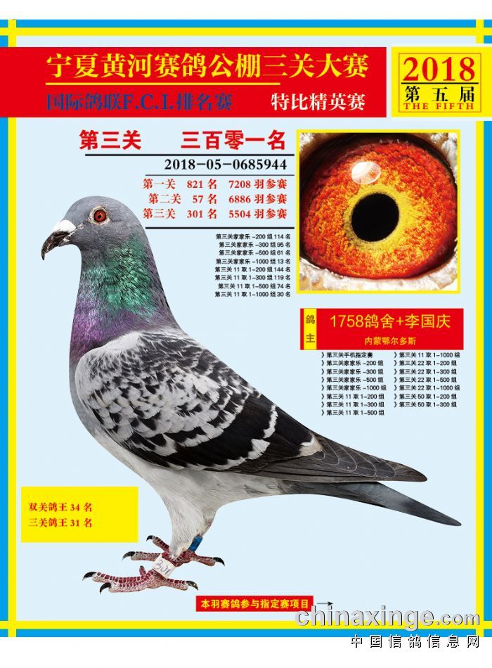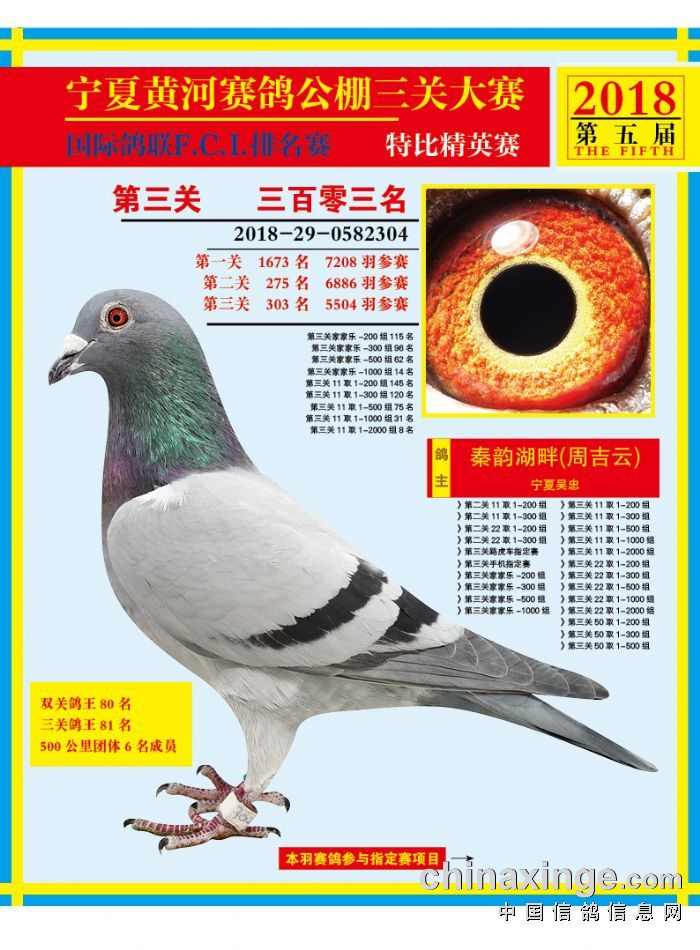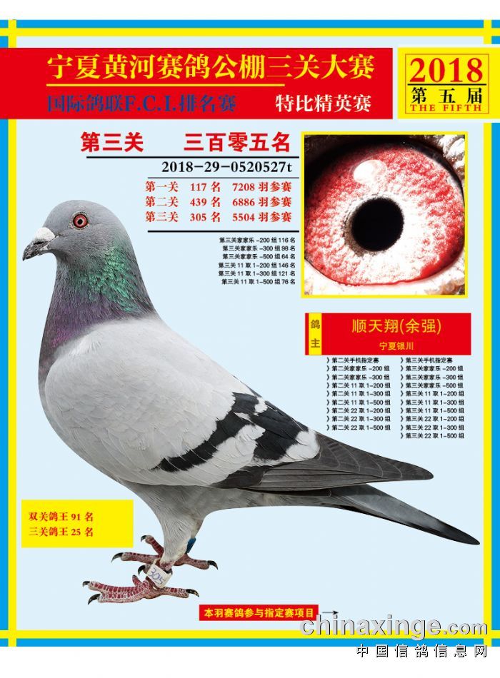 宁夏黄河赛鸽公棚2018年度500公里决赛301-315名赏析