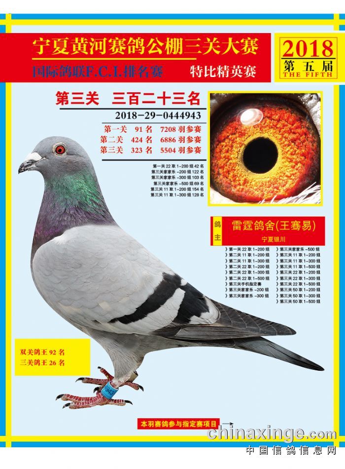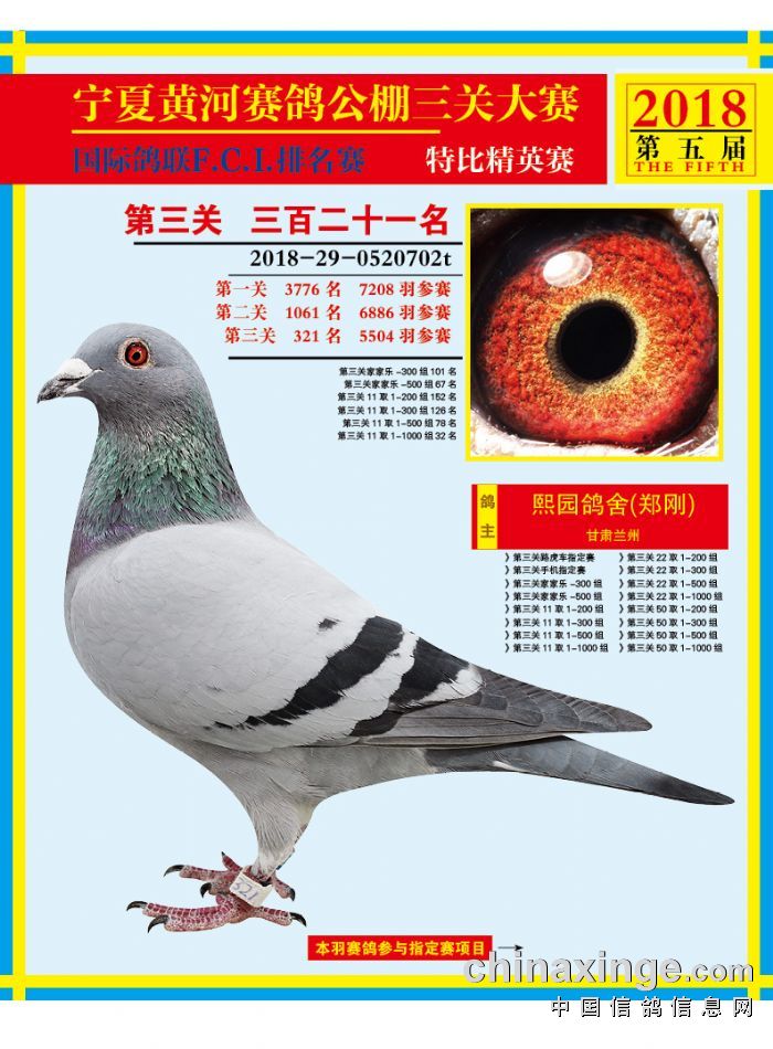宁夏黄河赛鸽公棚2018年度500公里决赛316-330名赏析