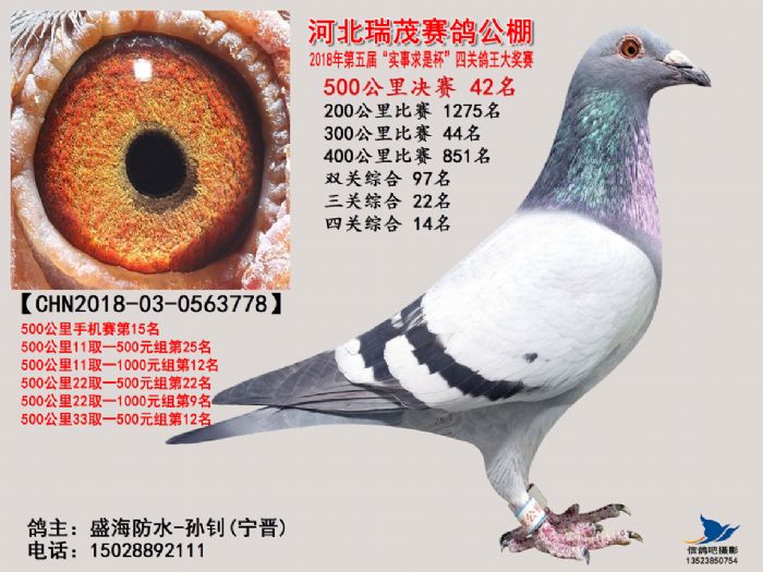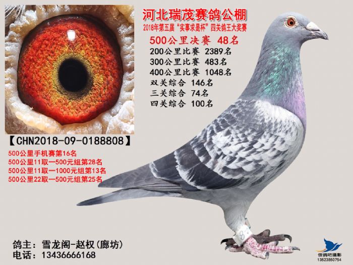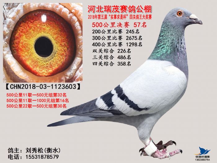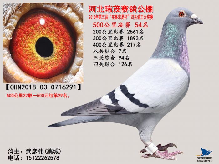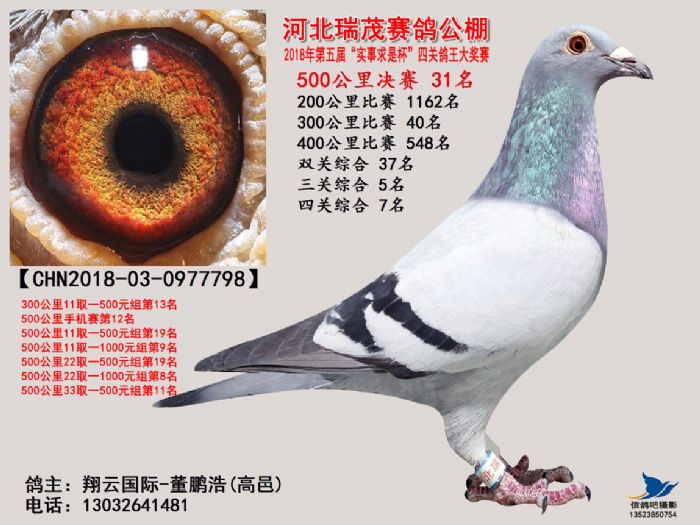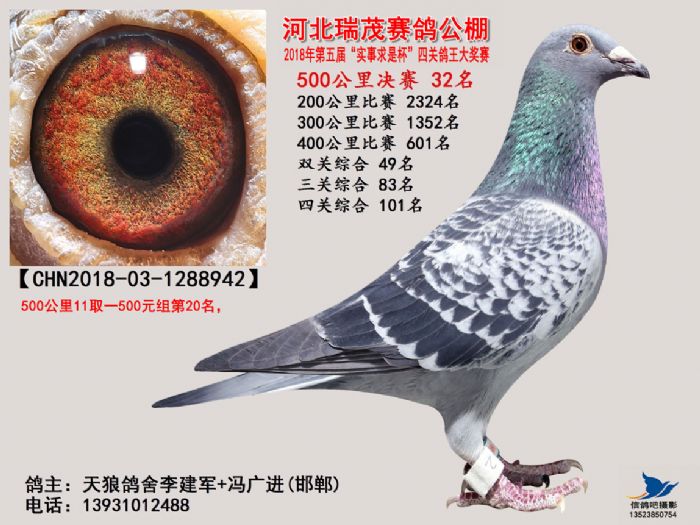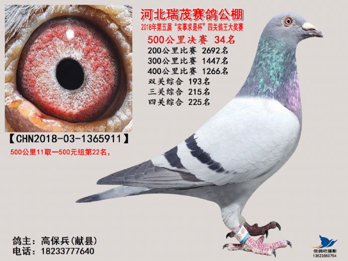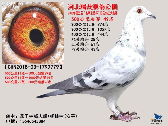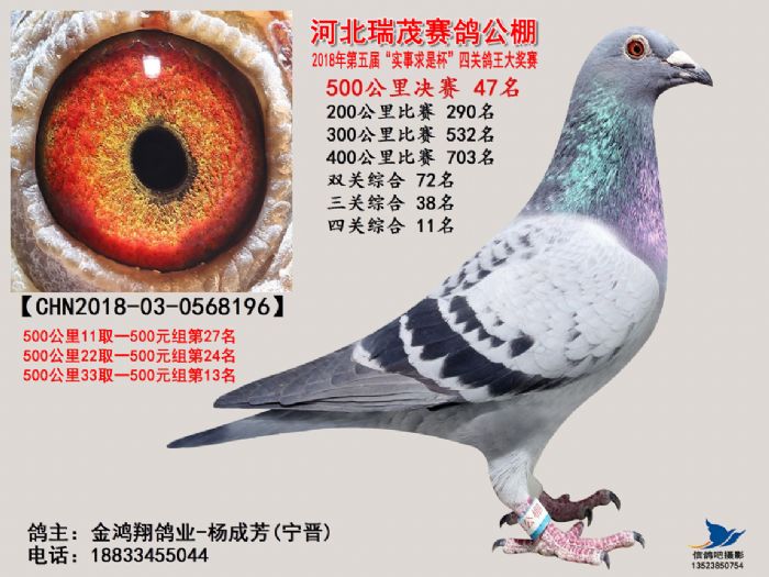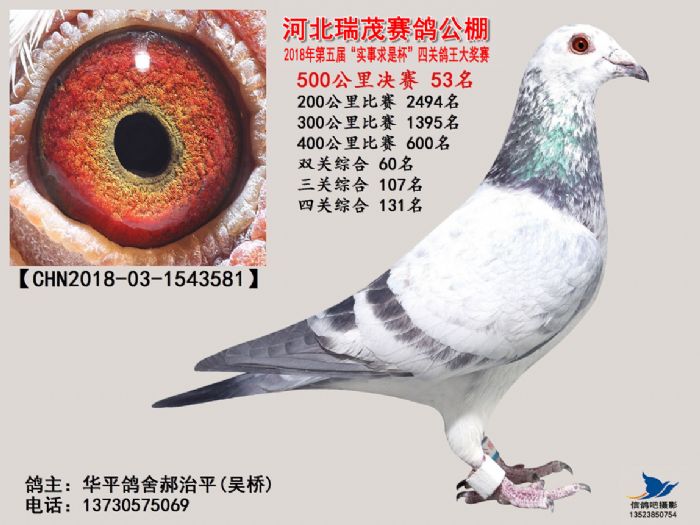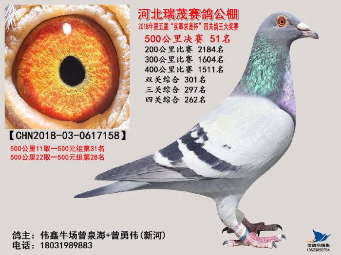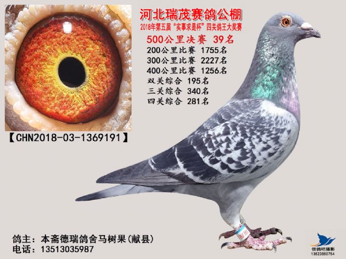 河北瑞茂赛鸽公棚2018年决赛获奖鸽照片31名-60名