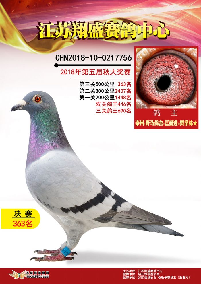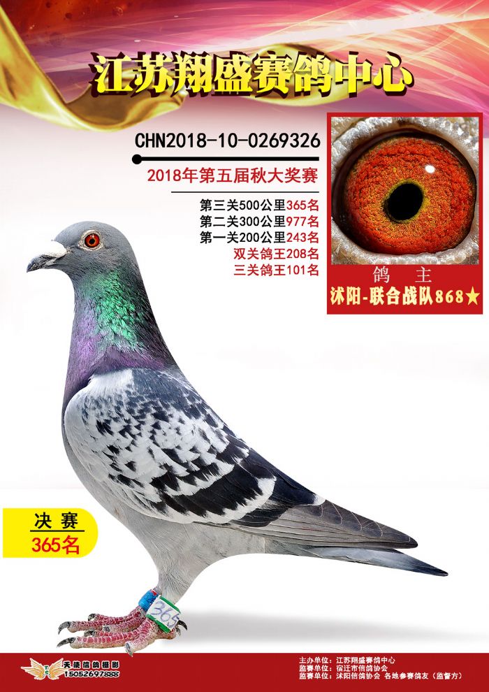 2018年秋江苏翔盛赛鸽公棚获奖鸽欣赏(361-365名)