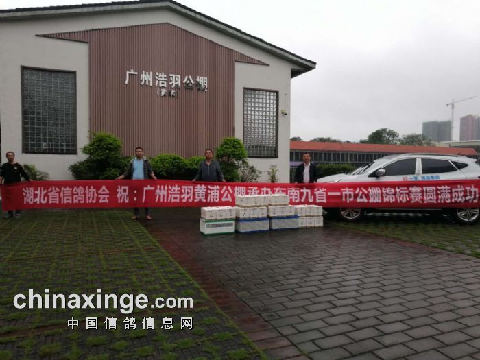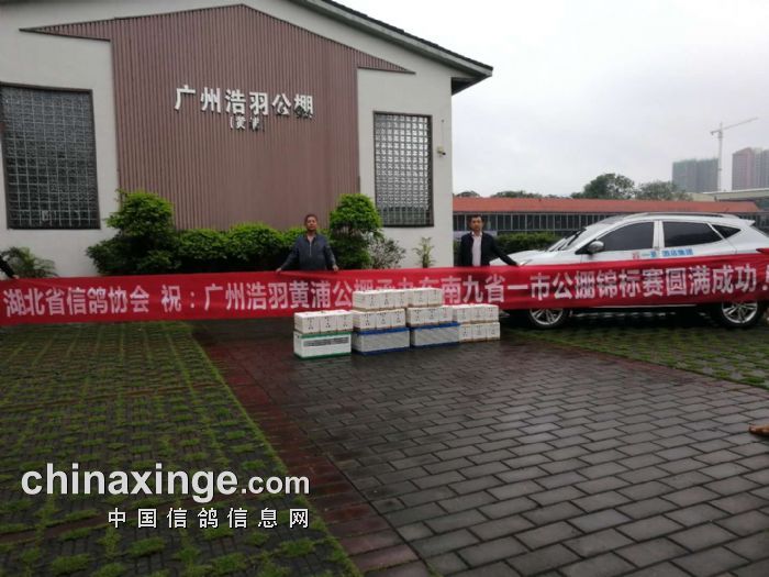 湖北省信鸽协会副秘书长孙炜先生携同湖北一景公棚孙经理亲自送参加锦标赛的第一批幼鸽入棚,孙先生于5月5日10点多出发,受浓雾、暴雨的影响,开车21个小时,于5月6日7点10分才到公棚,途经湖南常德,还捎来常德鸽友的14羽参赛鸽,感谢湖北、湖南鸽友的鼎力支持!当然对孙先生的感激之情更无以言表啦!这也是湖北鸽友第一次大批量参加浩羽(黄埔)公棚的比赛,祝今年在锦标赛与公棚赛都能获得优异成绩!