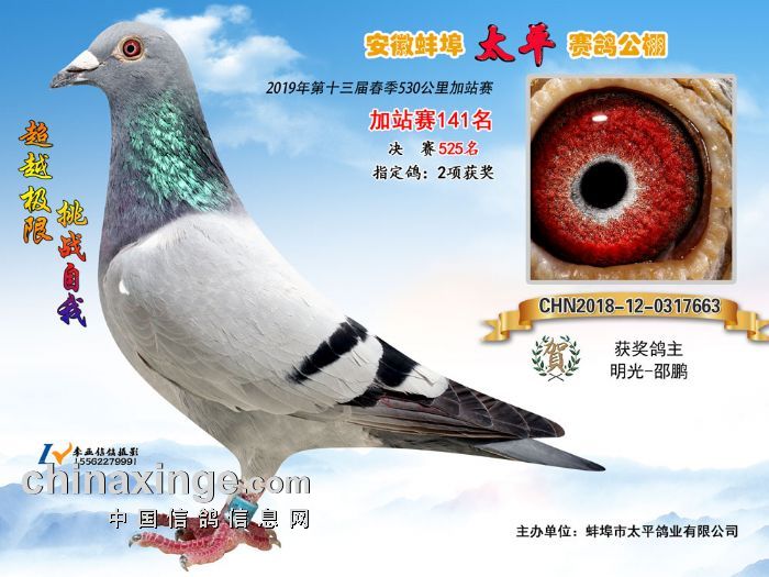2019年春安徽蚌埠太平赛鸽公棚530公里加站赛(141-150名)