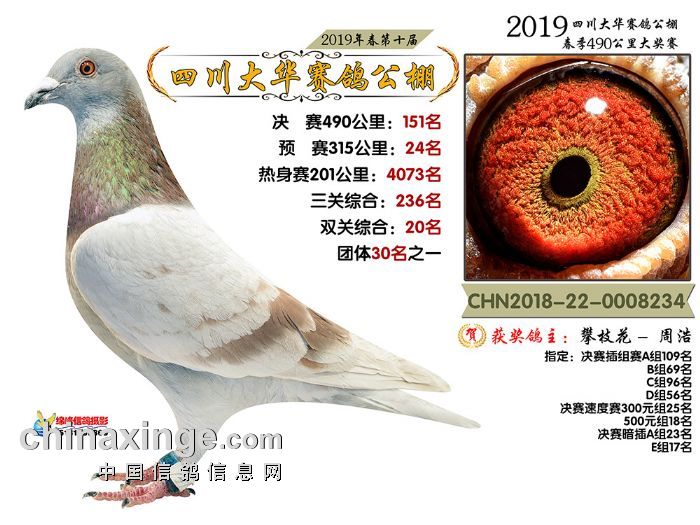 四川大华公棚2019年第十届490KM决赛获奖鸽图片欣赏 (151-165名)