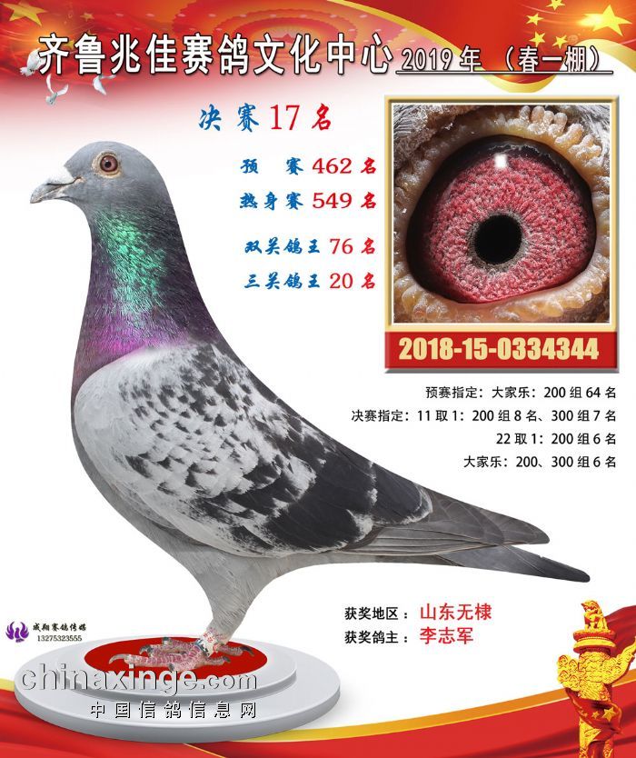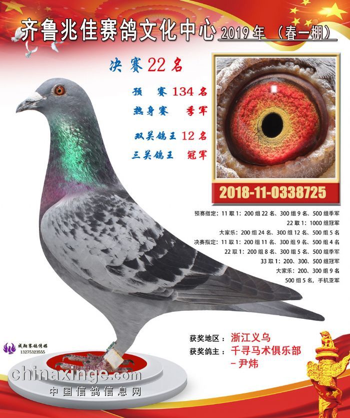 2019齐鲁兆佳春1棚决赛获奖鸽欣赏(1-30名)