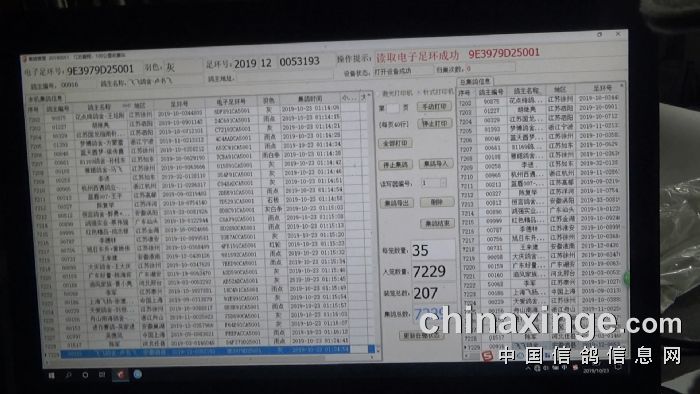 集鸽结束,最终集鸽羽数为7229羽