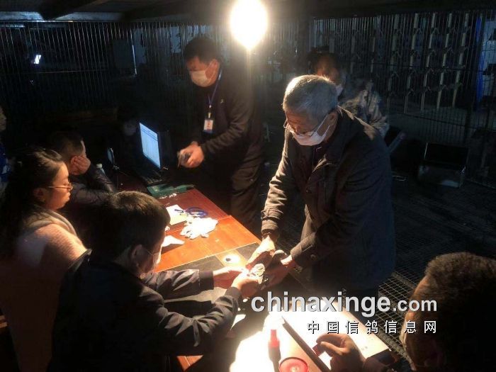 集鸽工作从27日晚上18:47分开始,第一羽扫描鸽2019-31-0096552,到22:48分最后一羽赛鸽2019-22-0964986扫描上笼,共计上笼4100羽赛鸽!