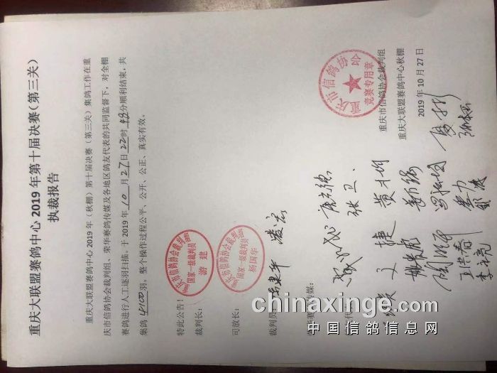 重庆大联盟赛鸽中心(秋棚)2019年第十届第三关决赛集鸽图文集锦