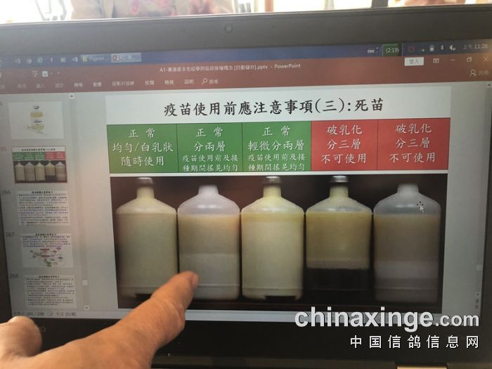 这张图是说油苗(灭活苗)若出现两层分层可用,当出现三层则说明疫苗已坏不能再用