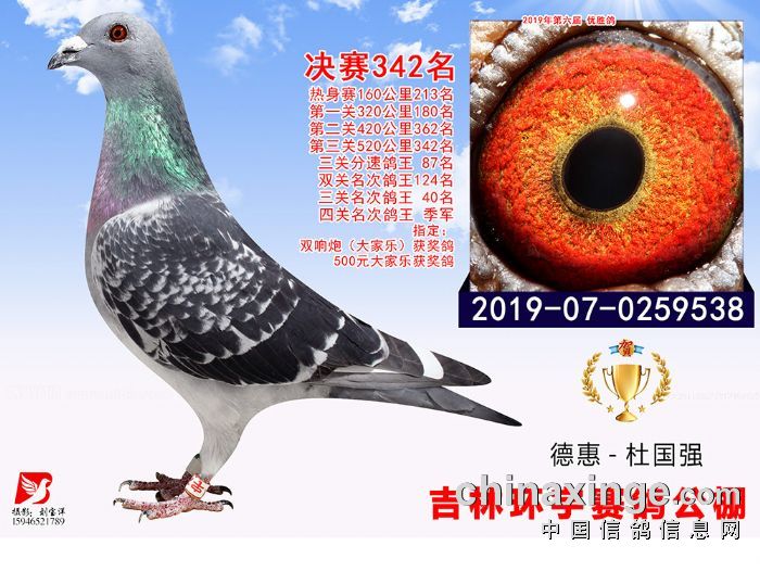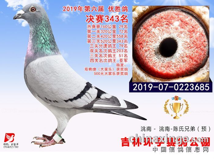 吉林环宇(小)2025年加站赛1-15名获奖鸽照片赏析