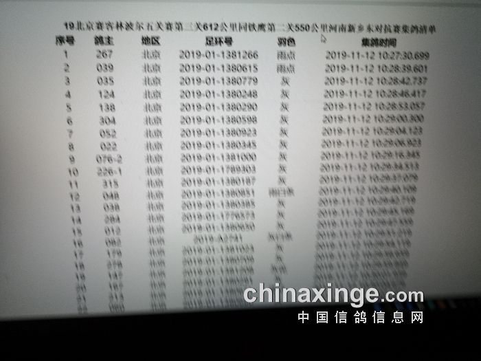 提示:如果此页面是训放清单,要想快速查询鸽环号,请按