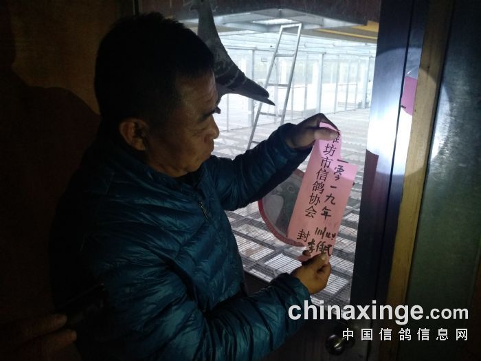 决赛前第三天潍坊市信鸽协会裁判开启封条