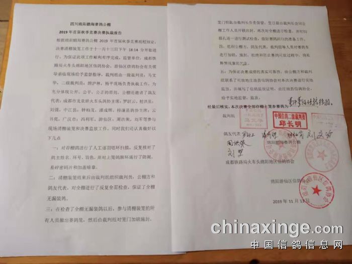 绵阳鹏翔赛鸽公棚决赛执裁报告
