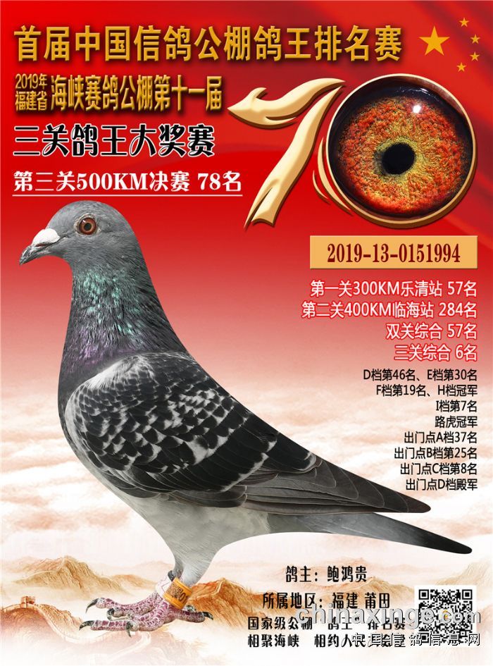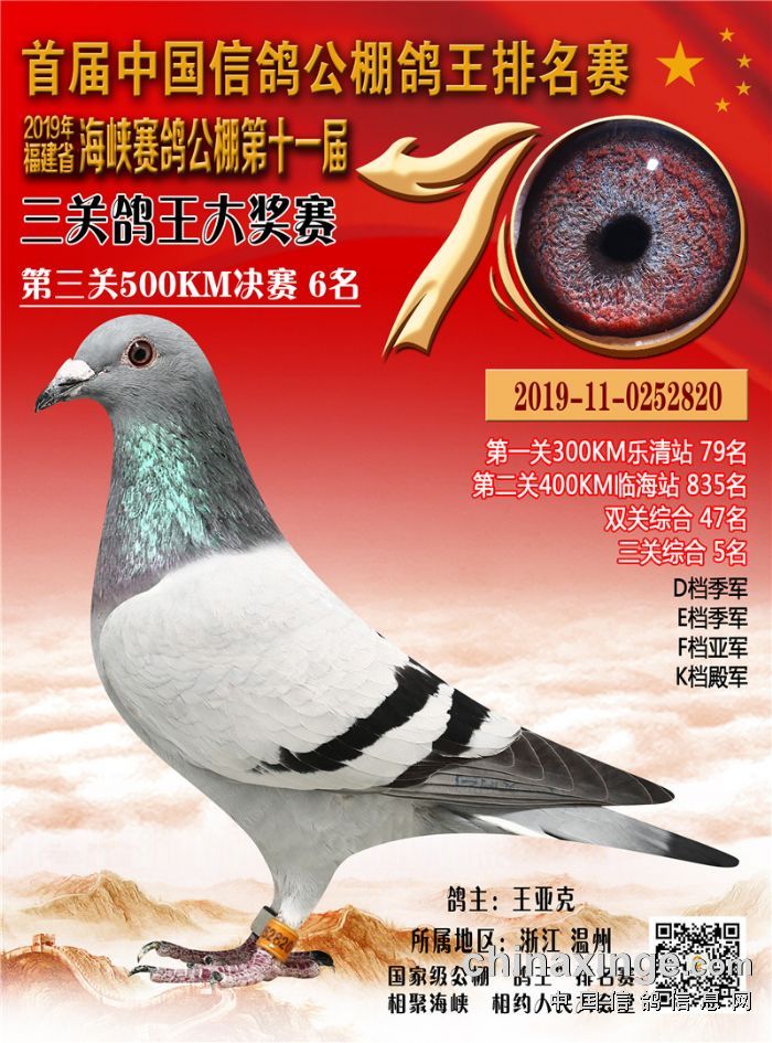 2019年三关鸽王靓影(1名-10名)(按名次顺序排序)