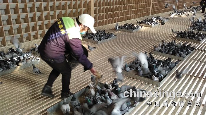 监看赛鸽进食情况: