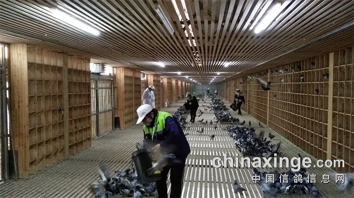 监看赛鸽进食情况: