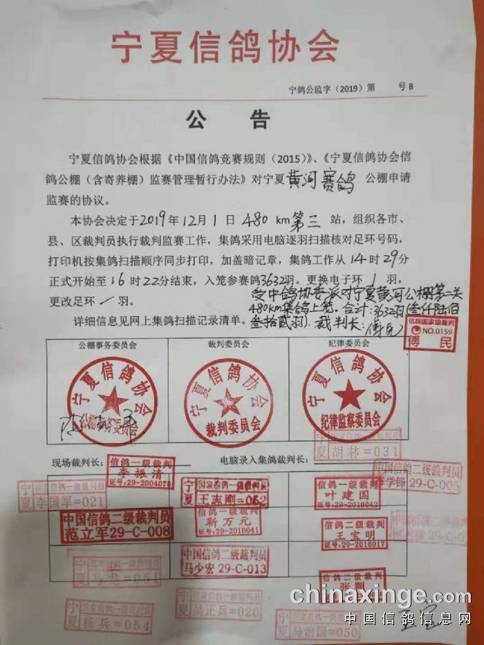宁夏信鸽协会公告